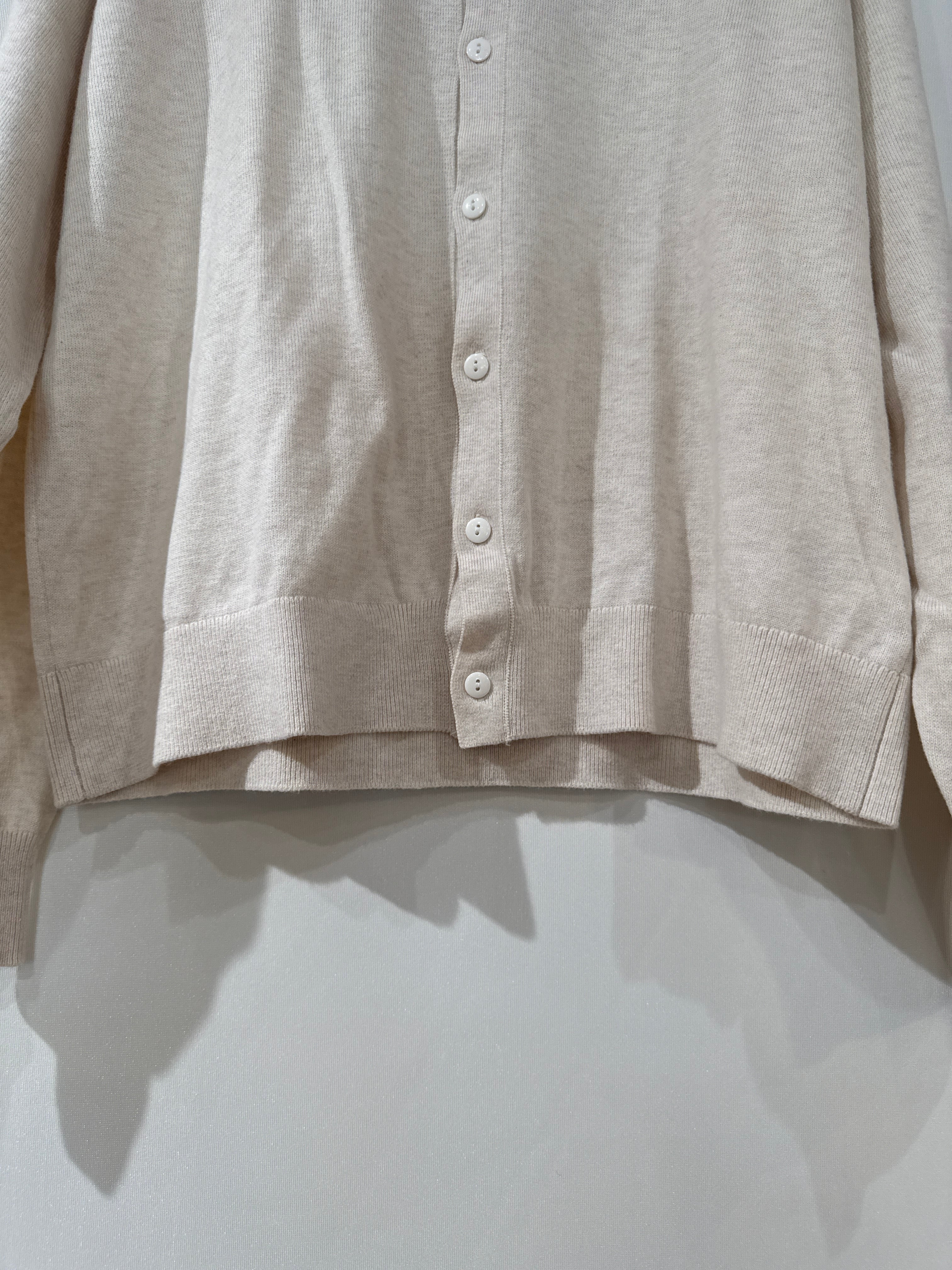 ふんわりと編み立てられた綿のニットの襟付きカーディガン。