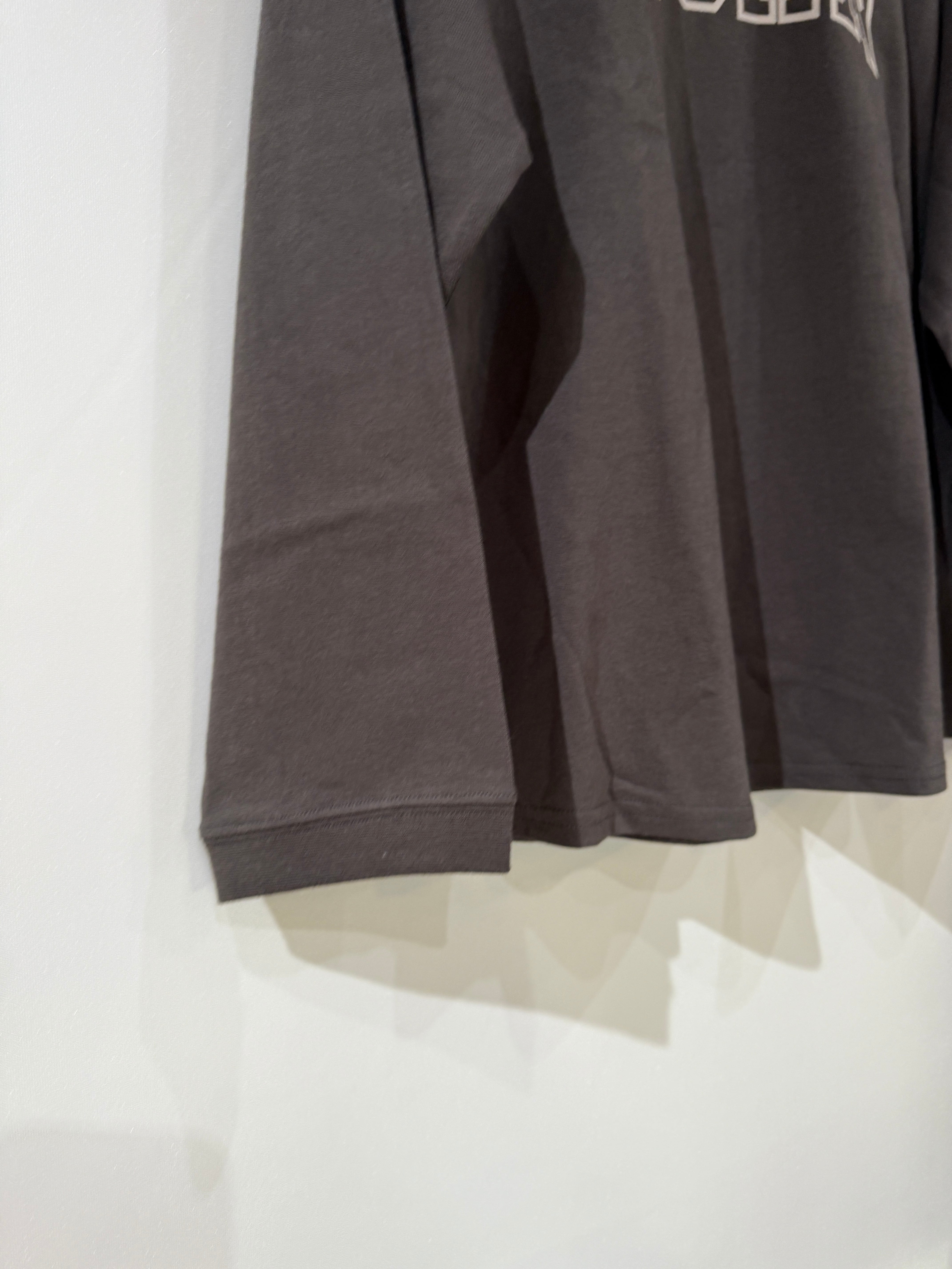 少し厚手のドライ感のある質感のロゴプリントTシャツ。
