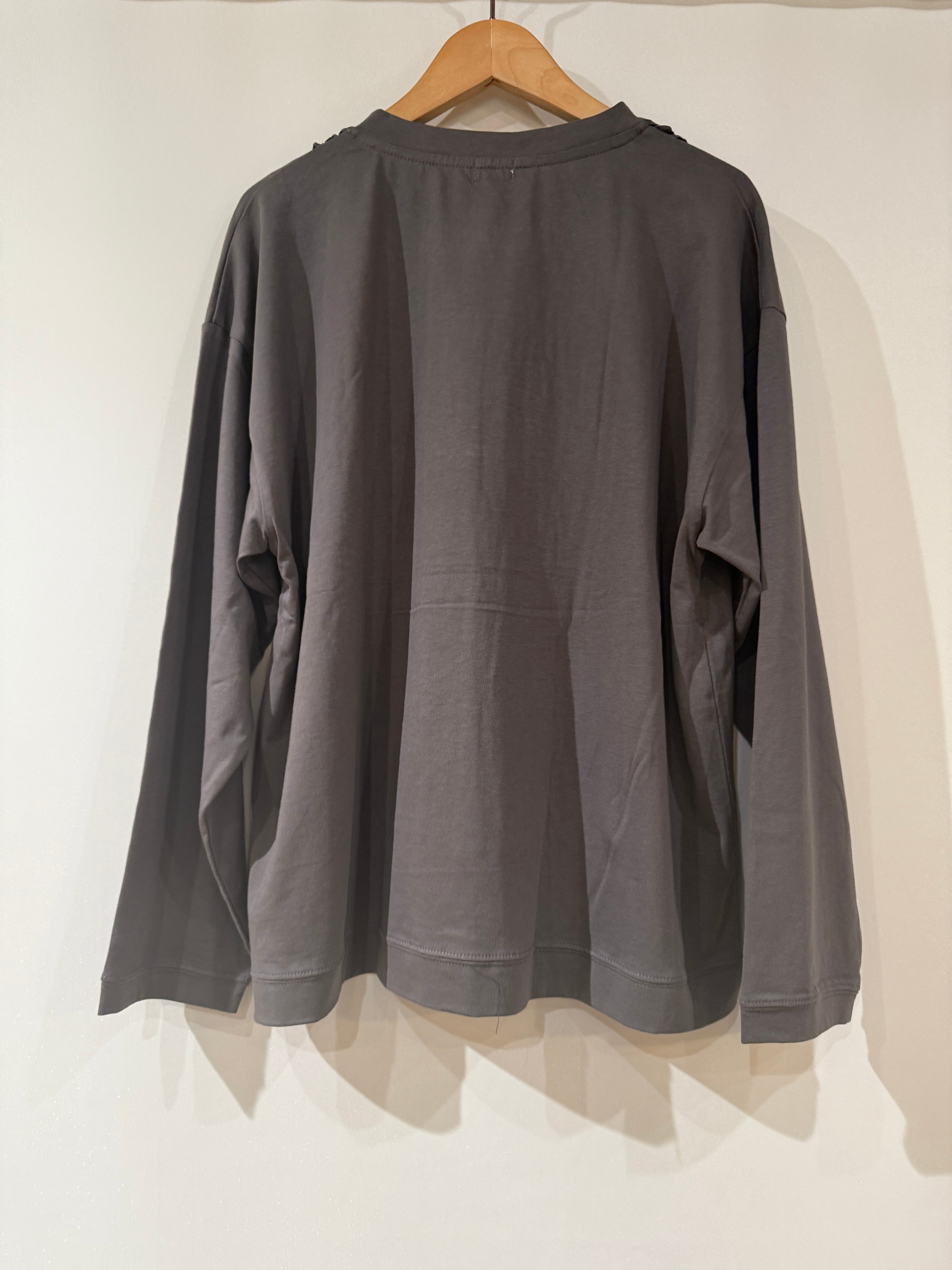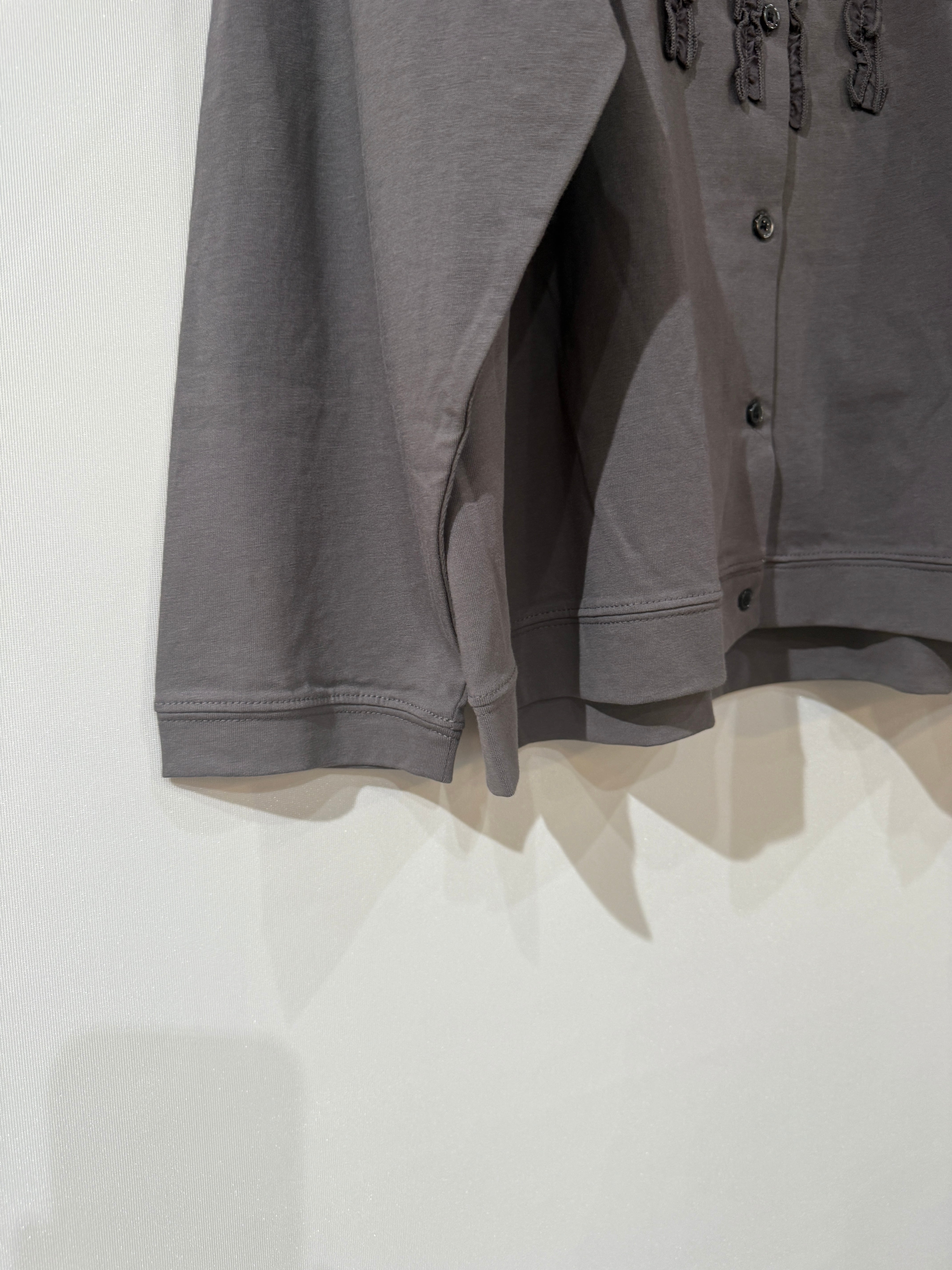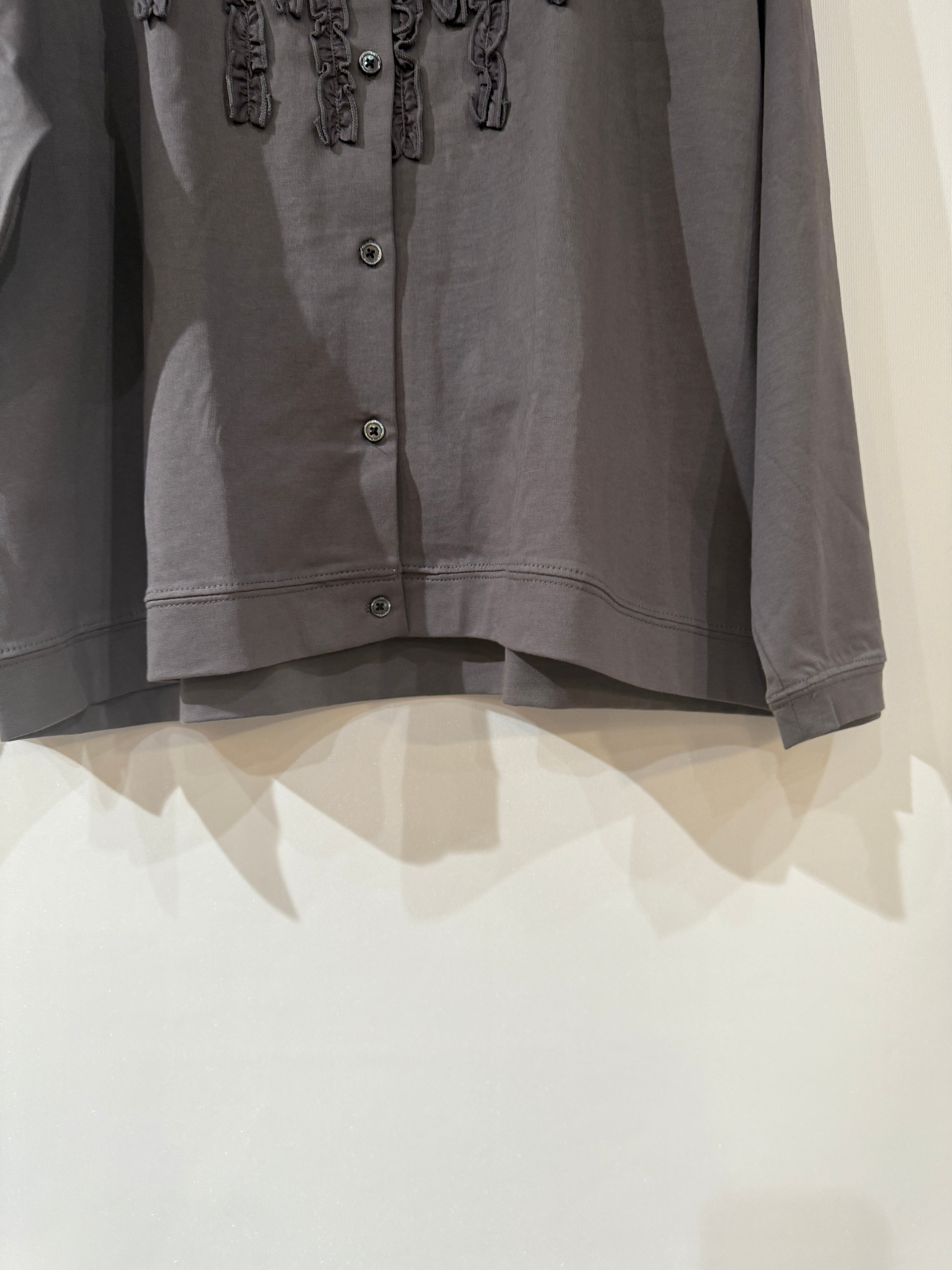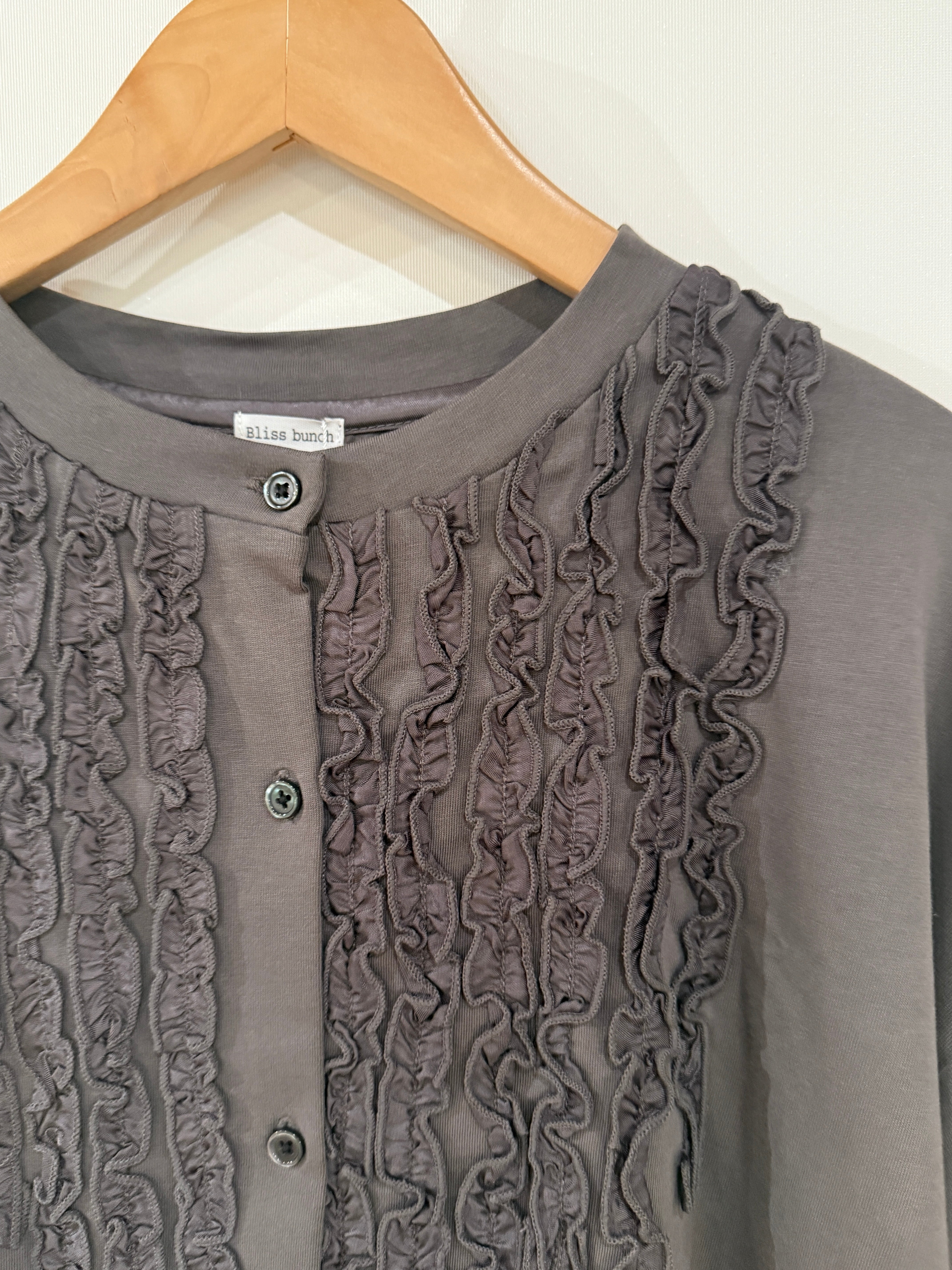 Bliss Bunch ブリスバンチ/オーガニック天竺フリルモチーフ前開きカーディガン  チャコール