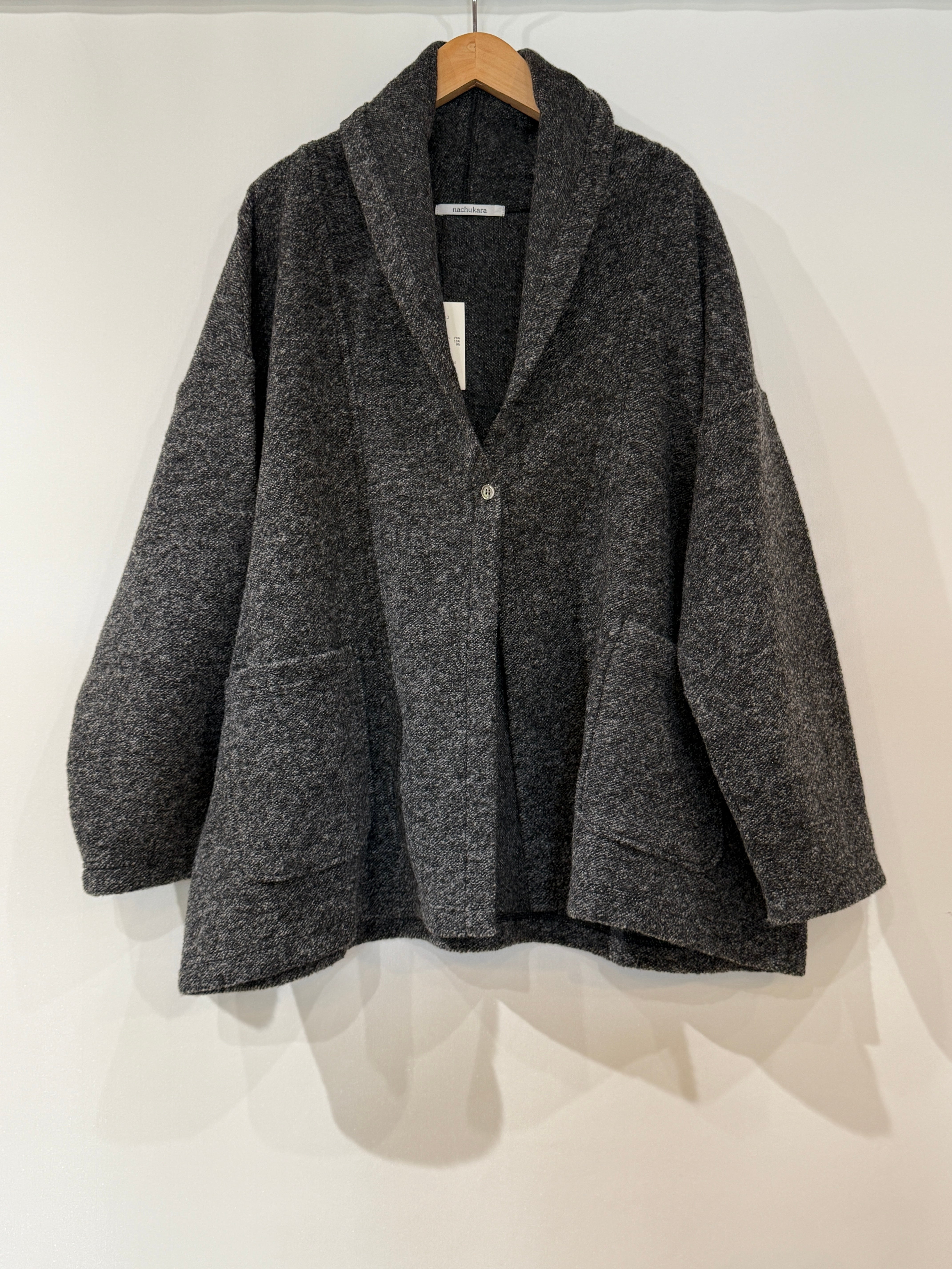 送料無料:nachukara/ ライバーニットローブカーディガン チャコール