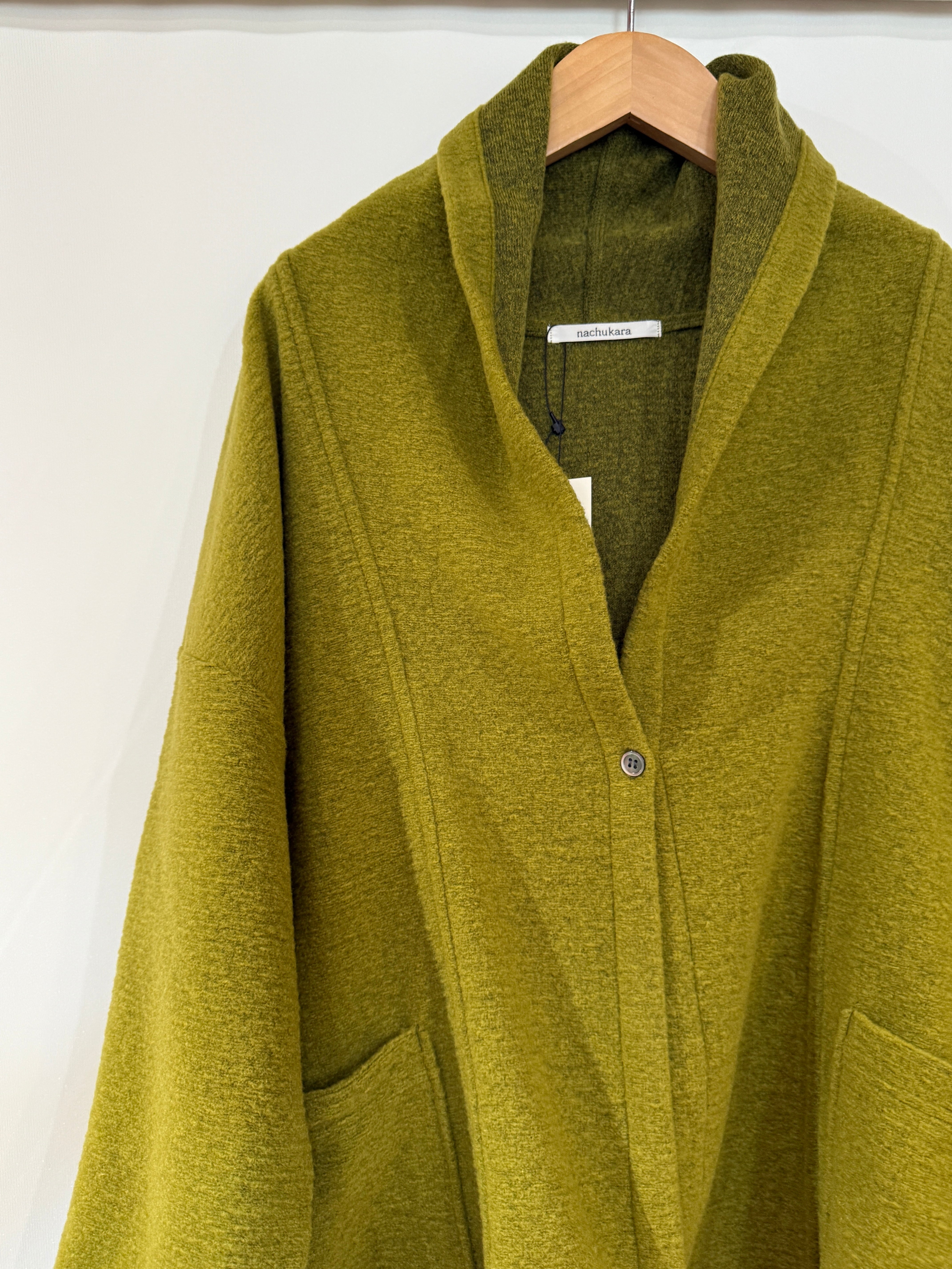 送料無料:nachukara/スライバーニットローブカーディガン モスグリーン