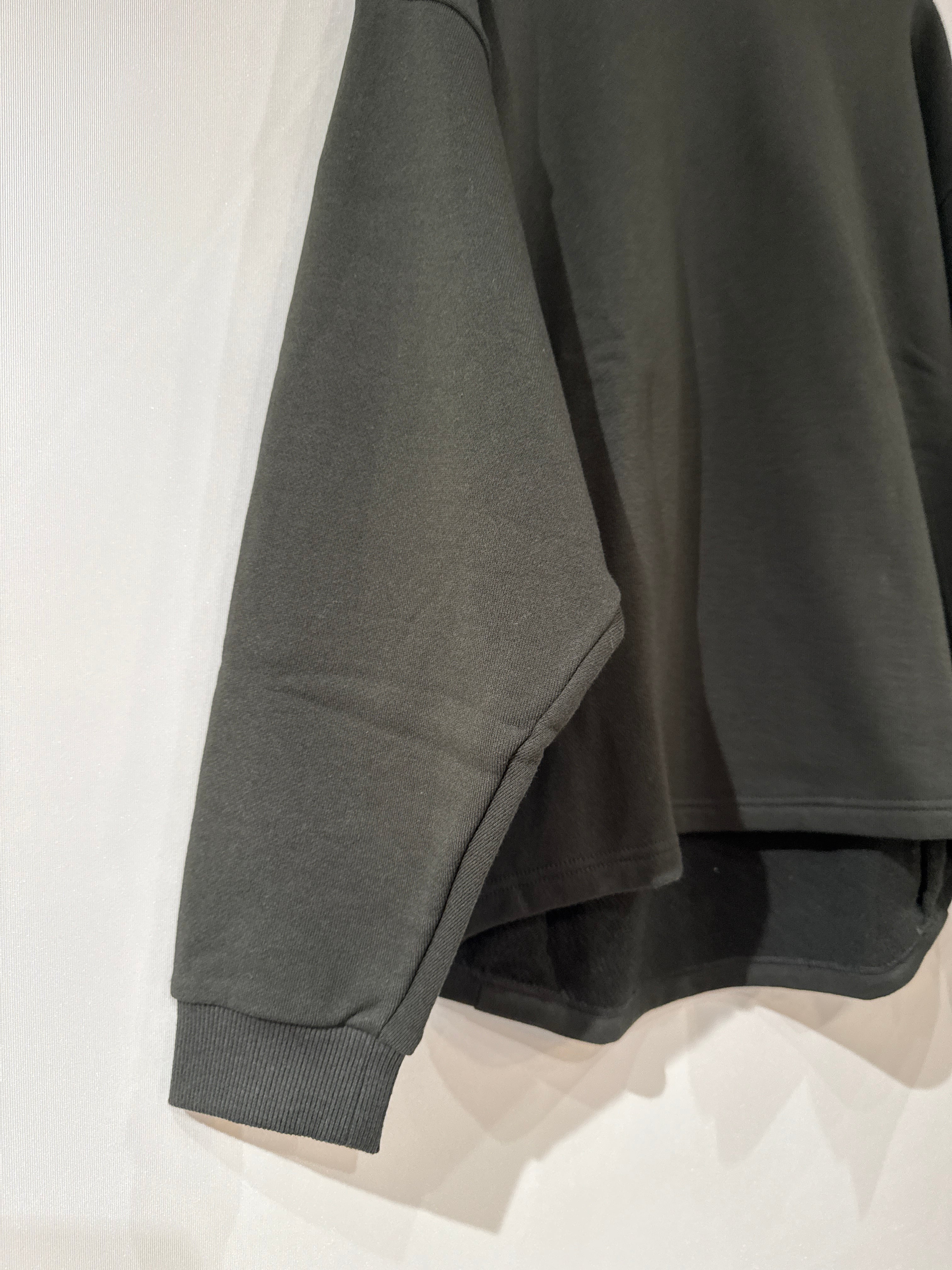 前後差のある丈感とバックのタックが特徴のスウェット。