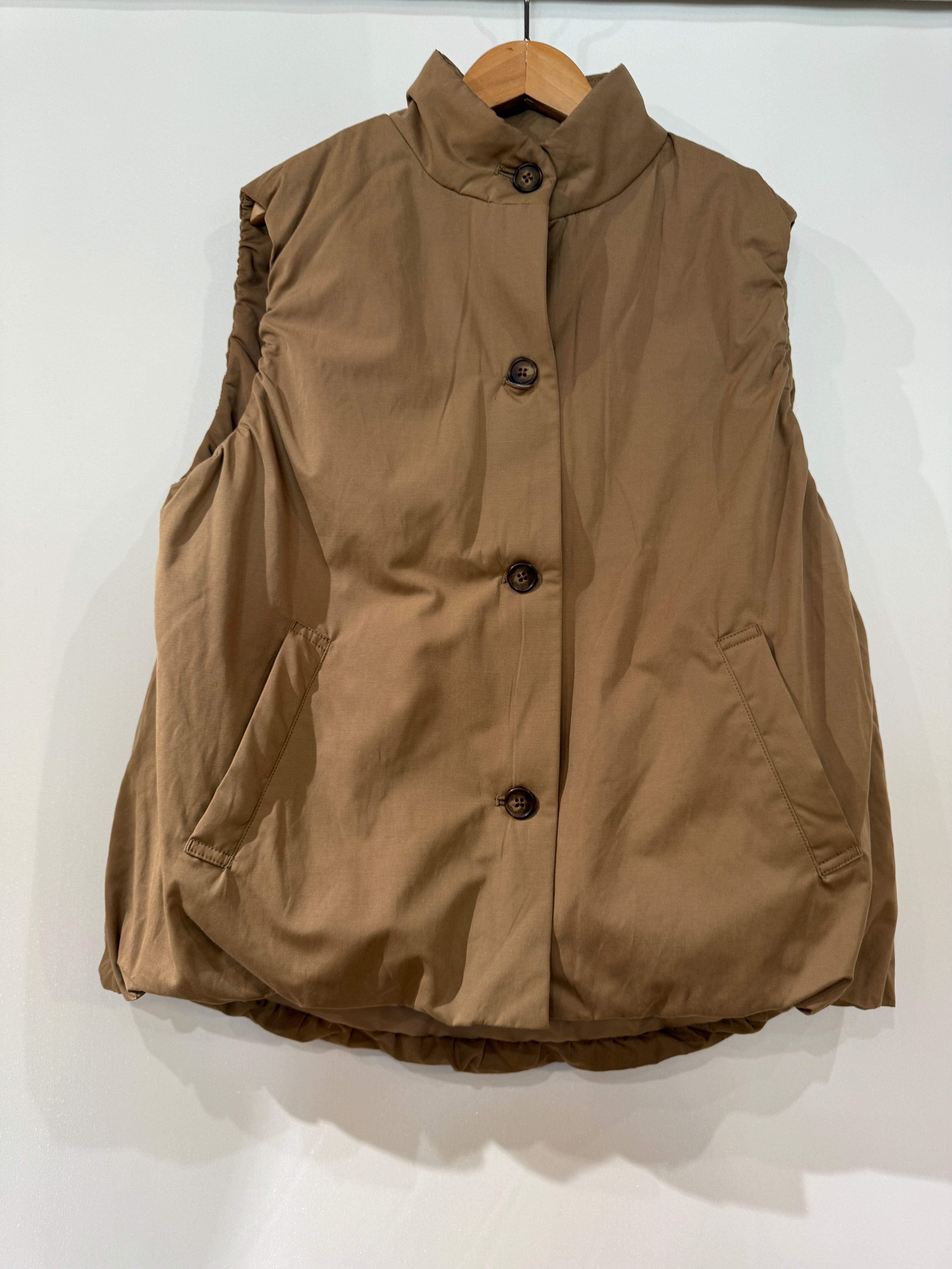 ふんわりと丸みを帯びたシルエットが特徴の中綿ベスト。