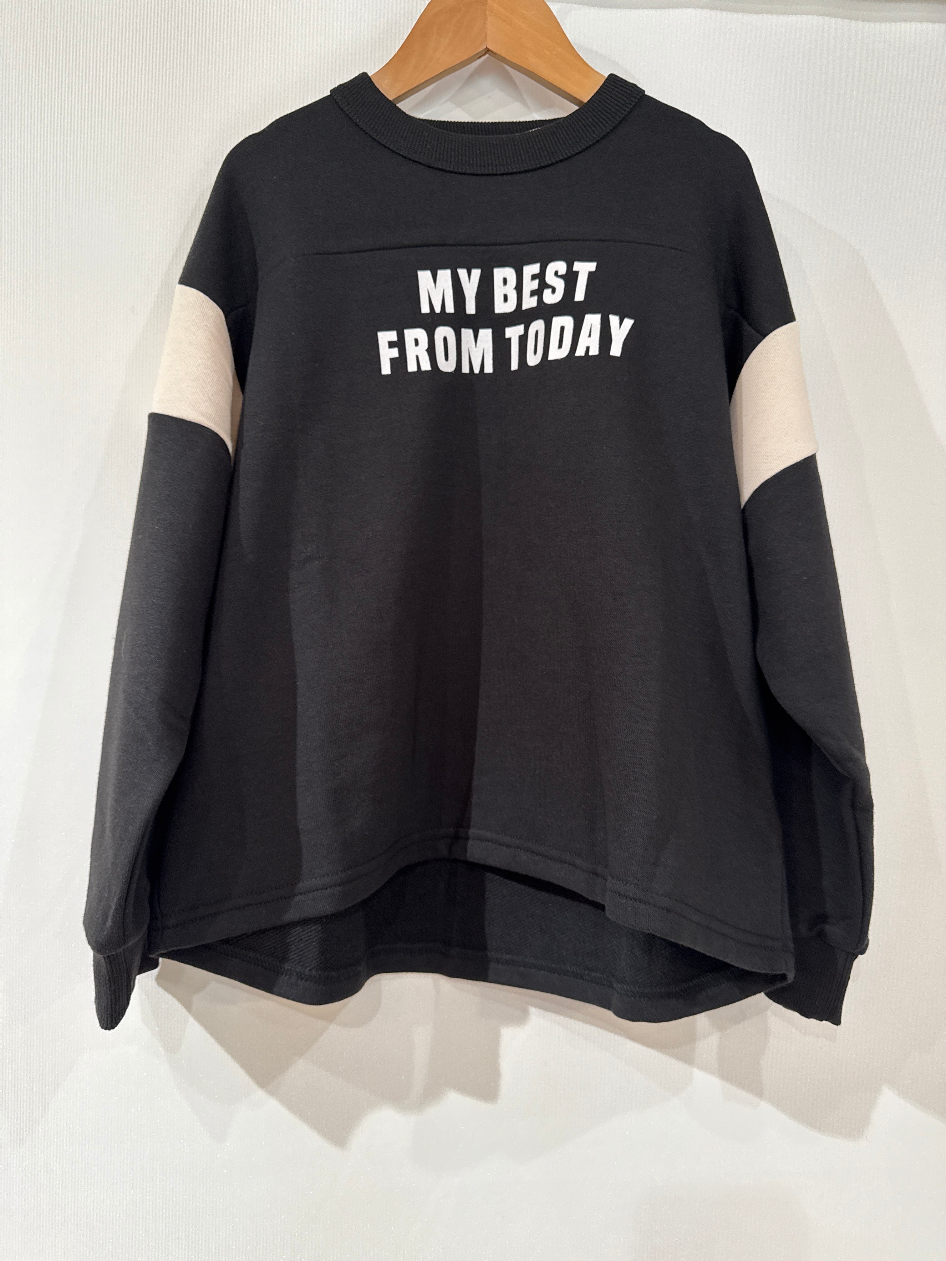 オーバーなサイズ感がかわいいフットボールトレーナー。