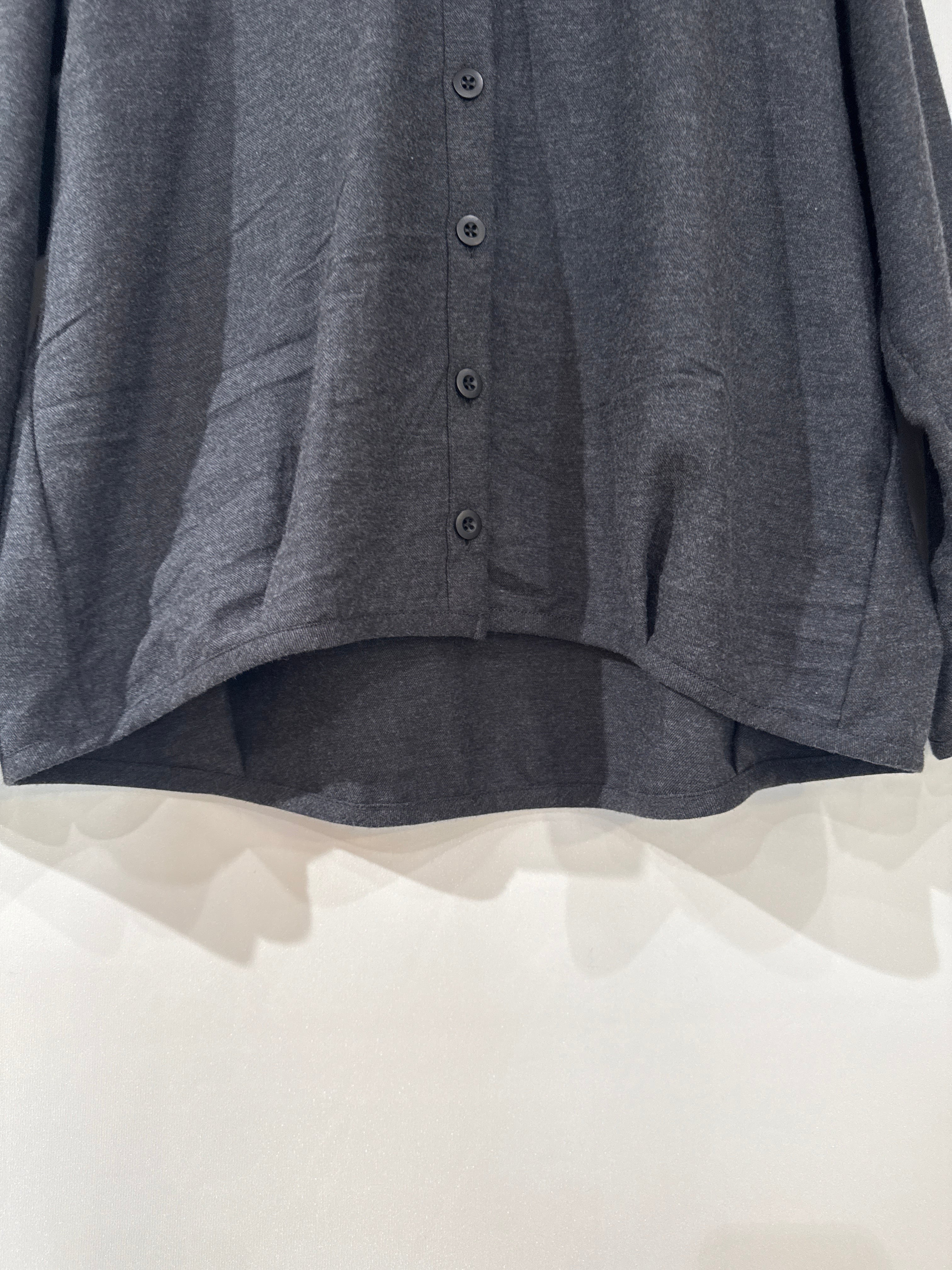 ピーチ起毛の柔らかな素材のシャツカーデ。