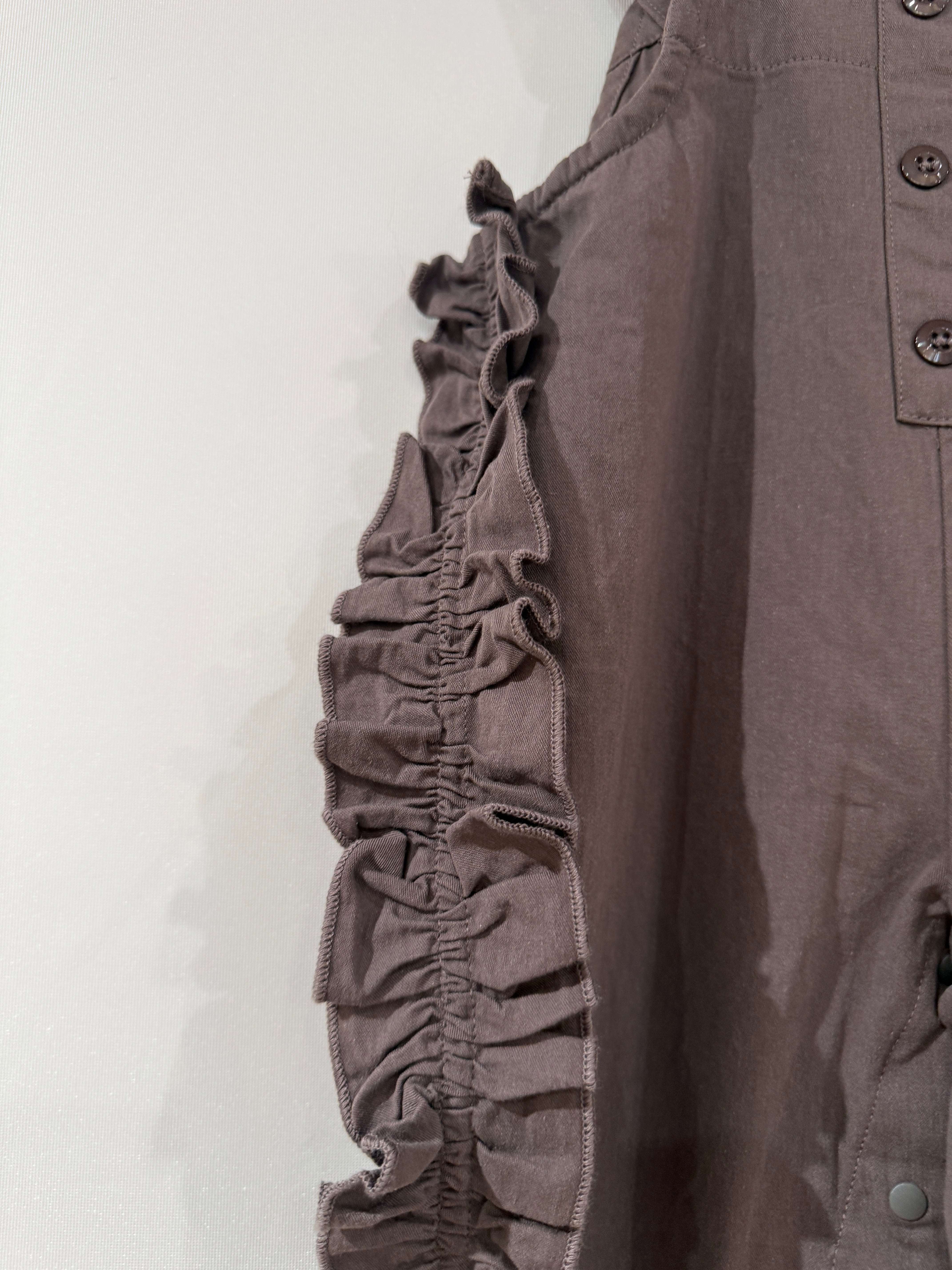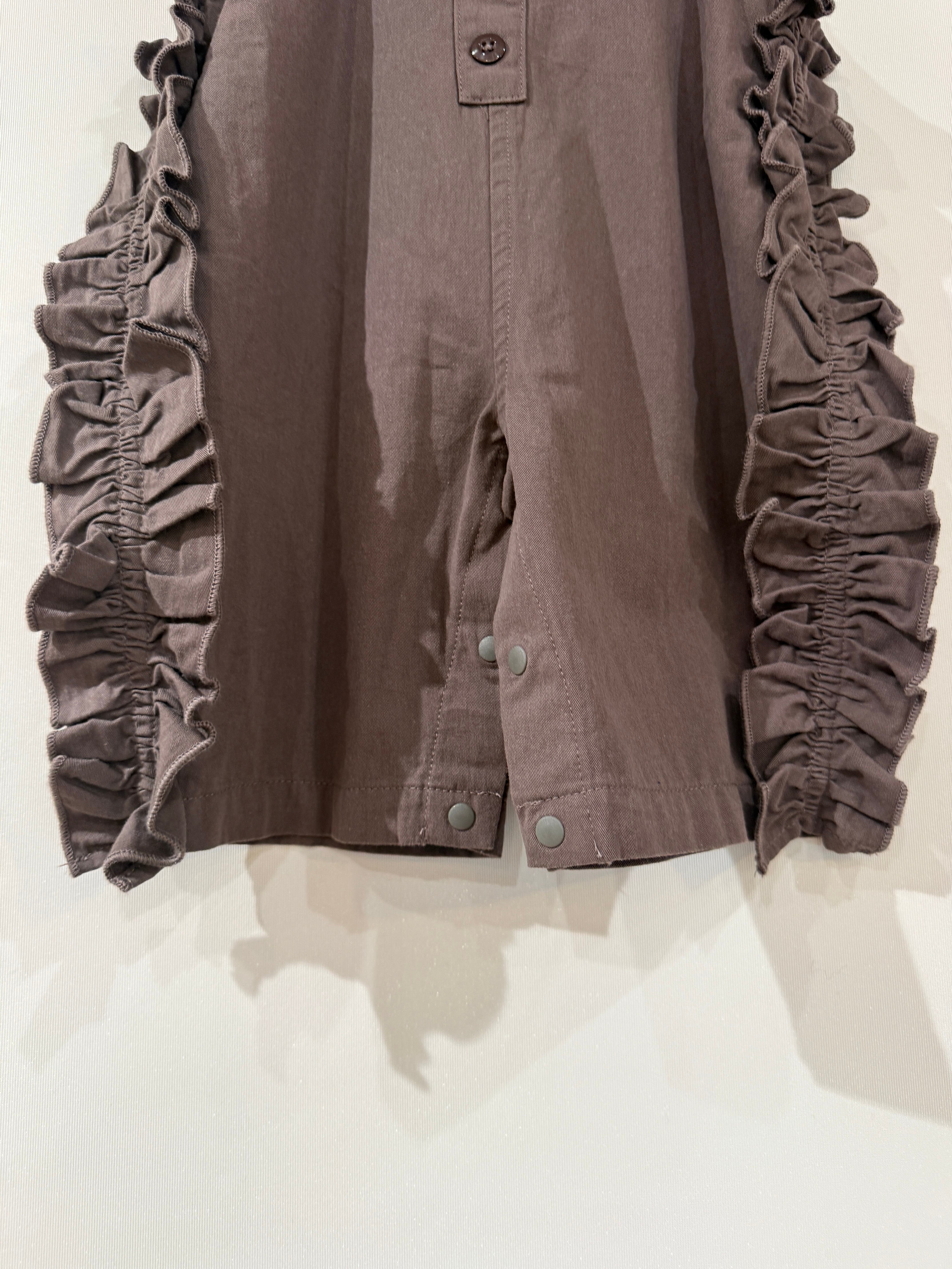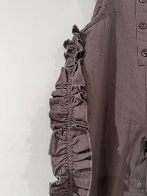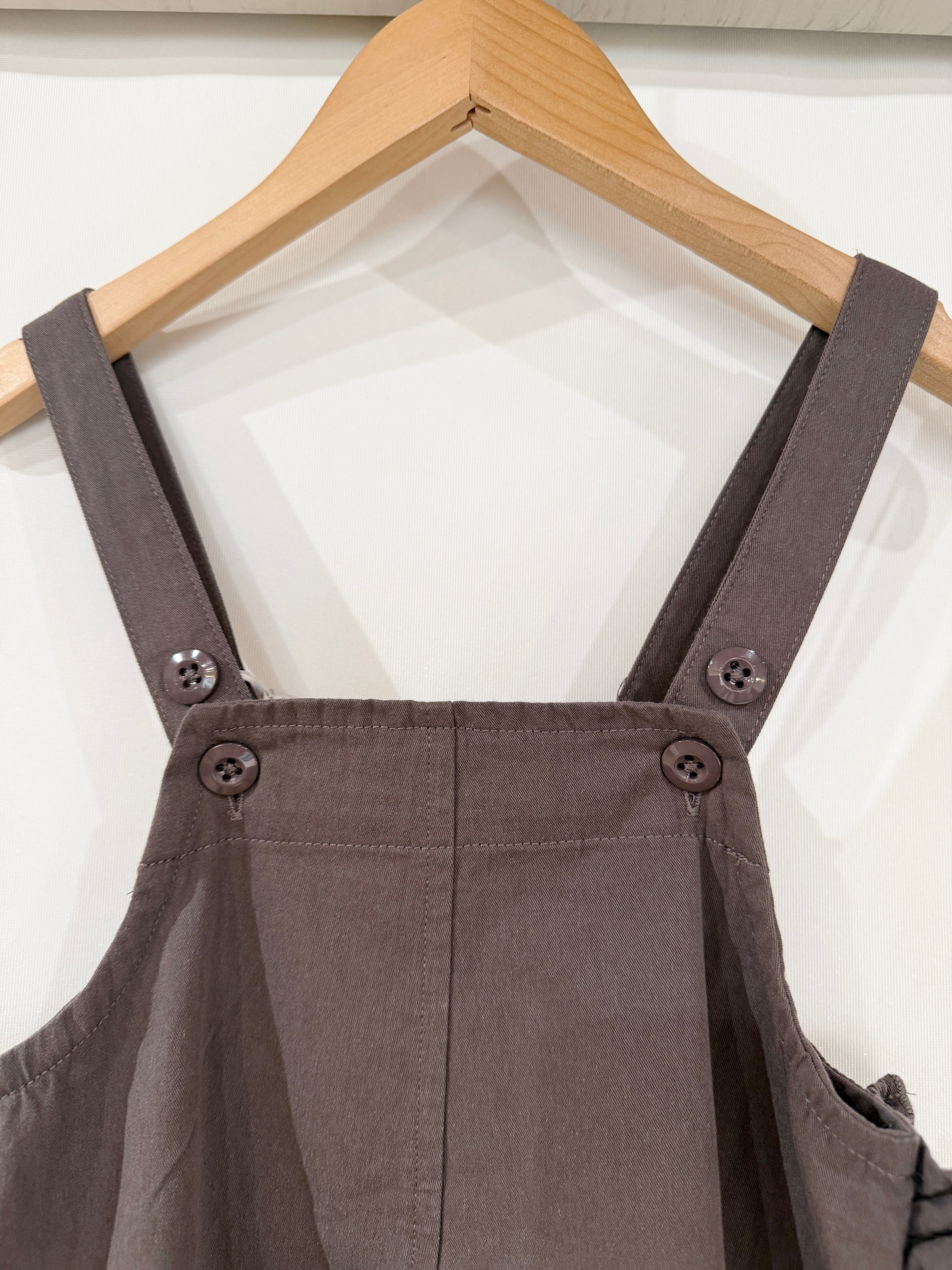 サイドのフリルが特徴的な、丸いフォルムが可愛いサロペット。