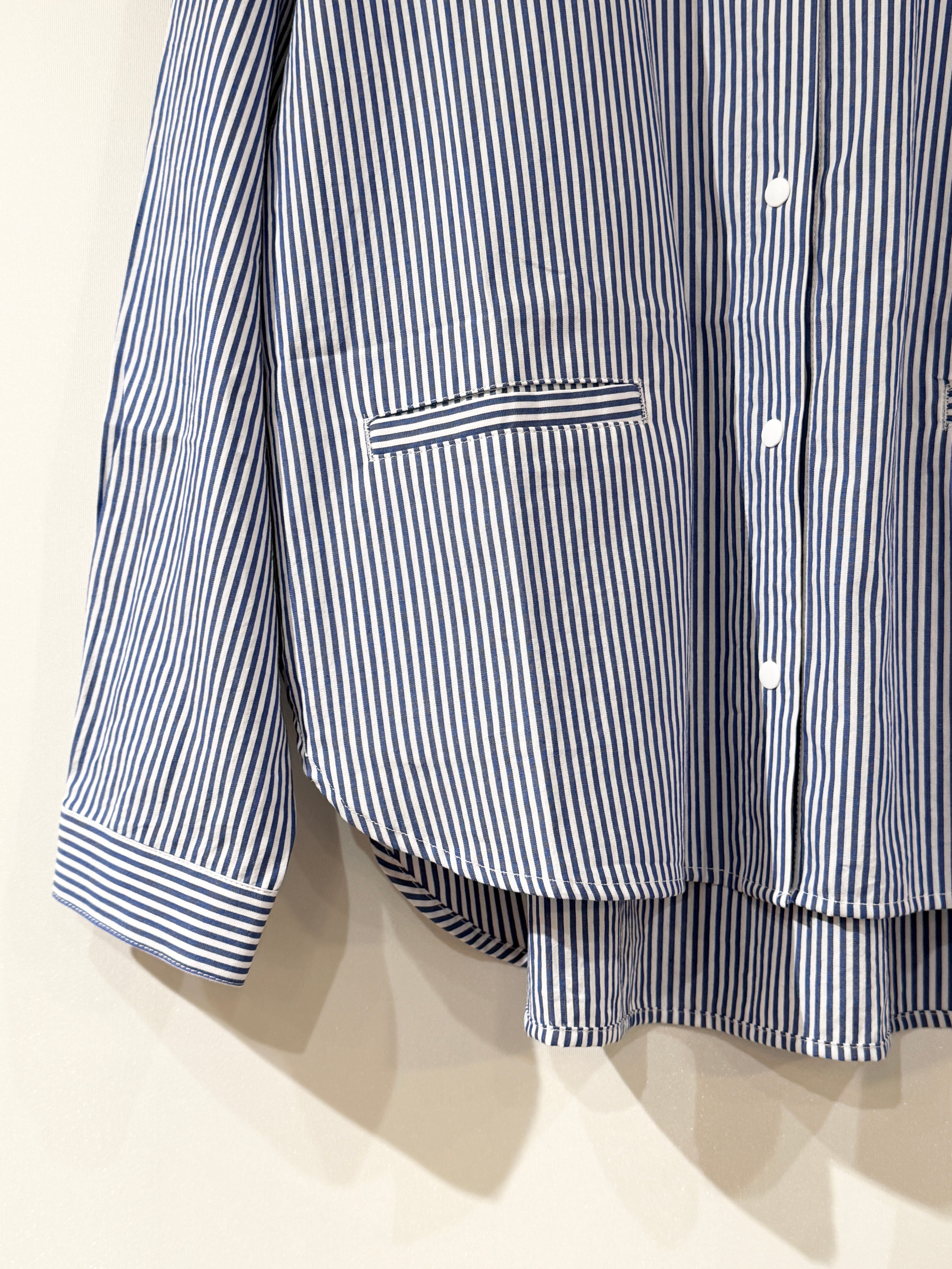 スナップボタン仕様でシャツジャケットっぽいイメージです。