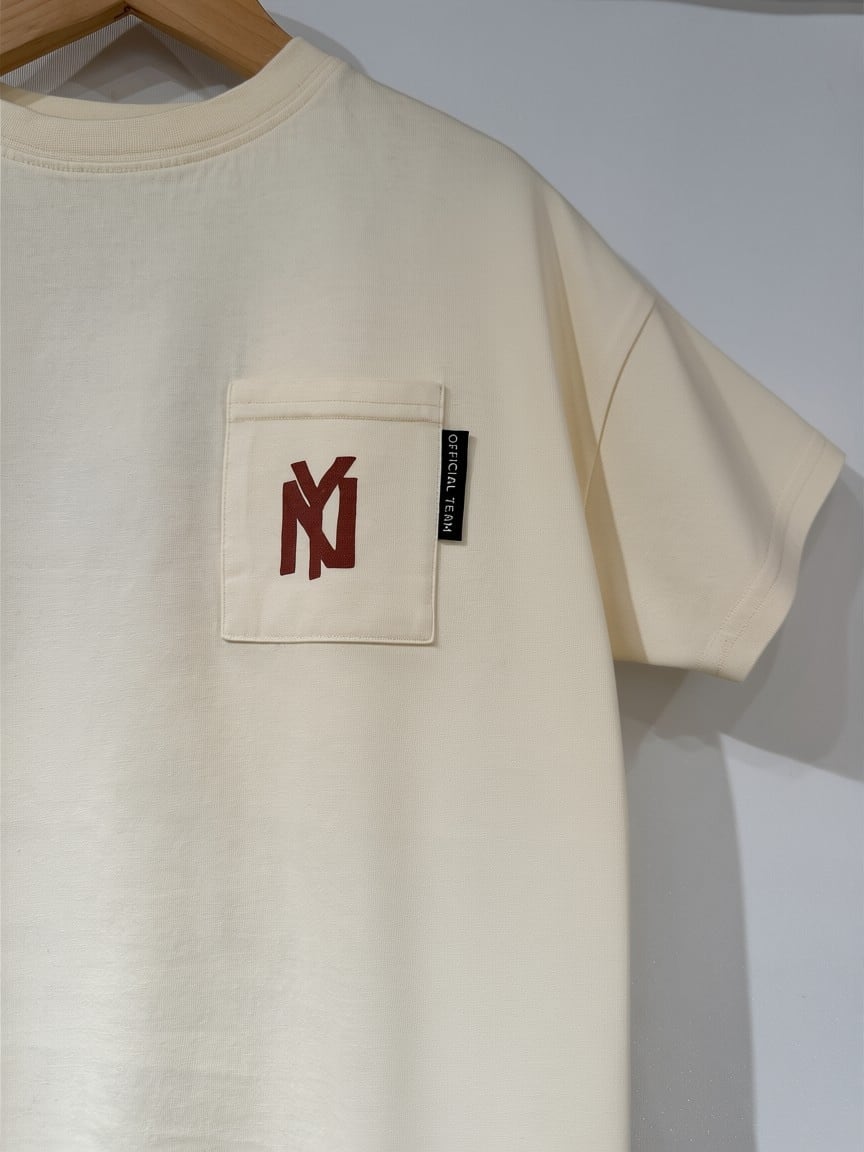 胸元にポケットがついたベースボールTシャツ。