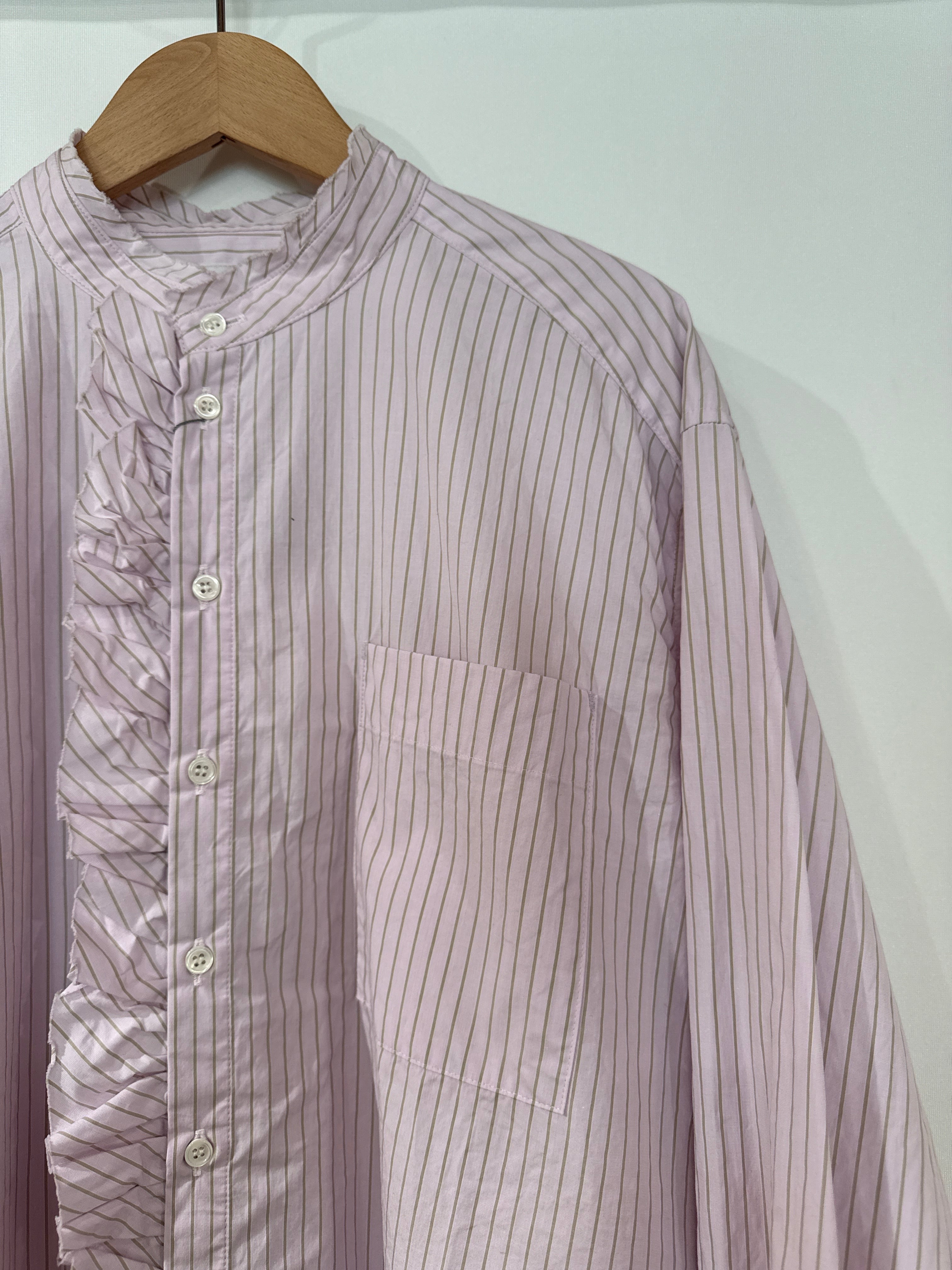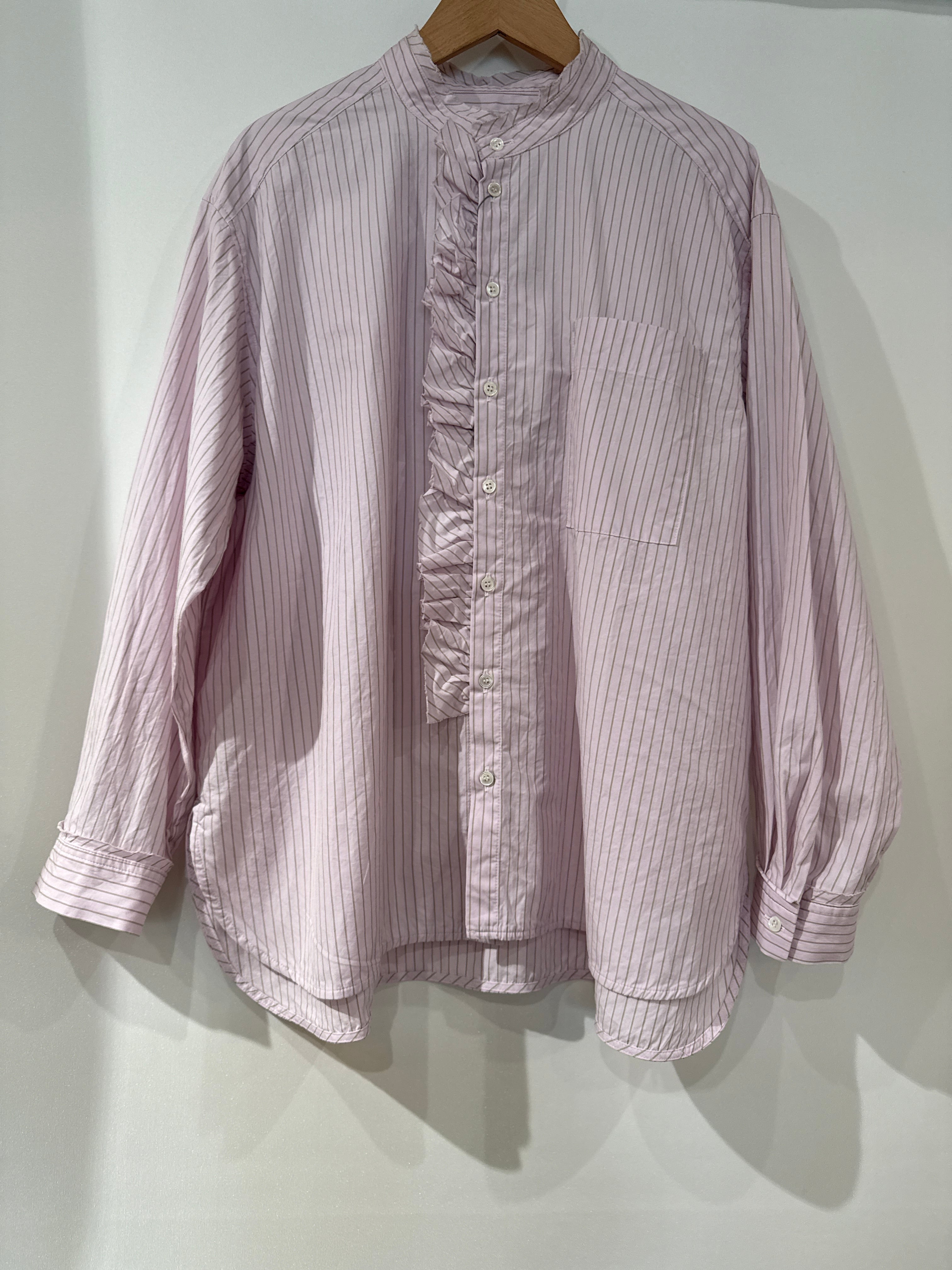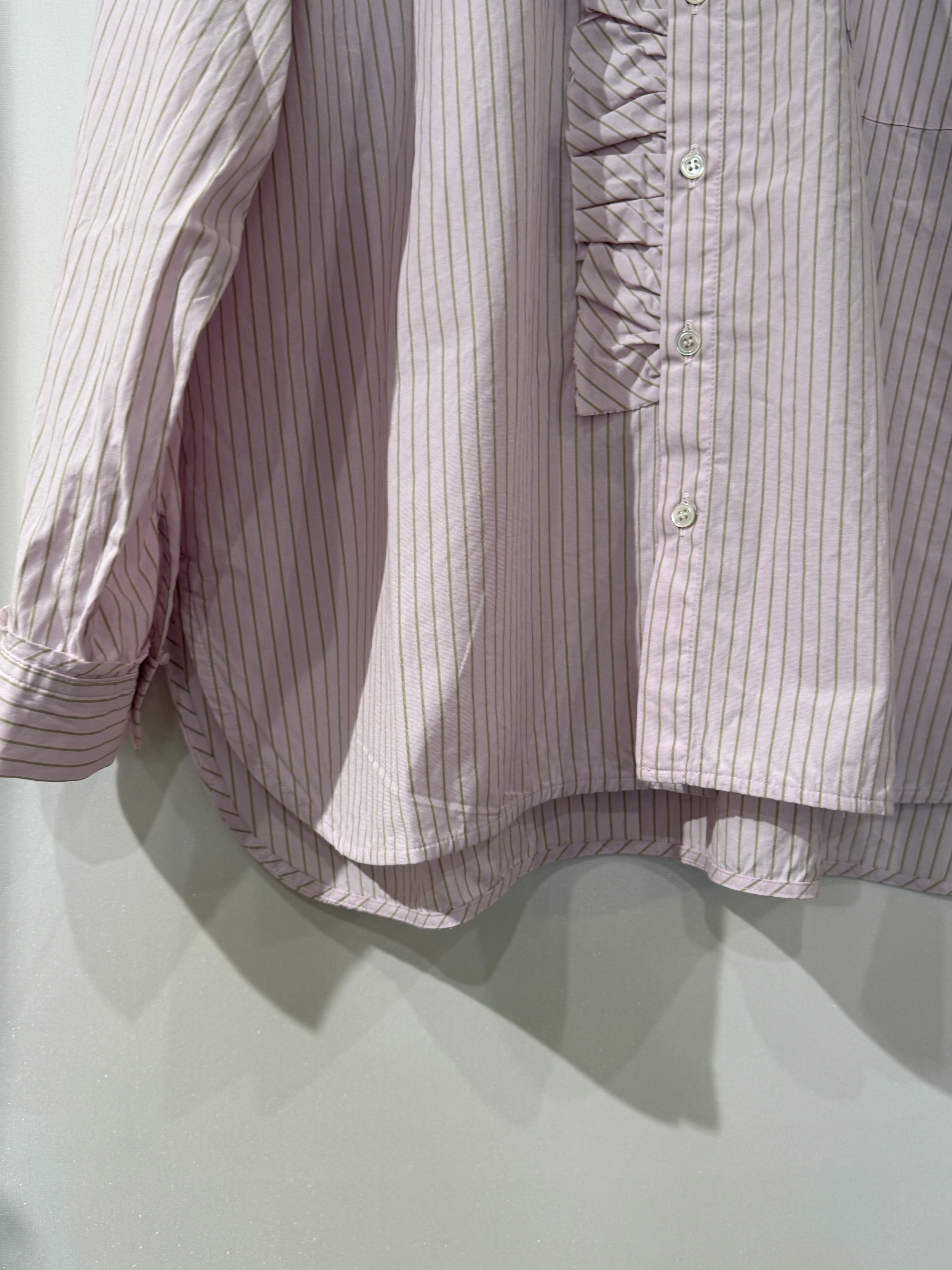 送料無料:NUVELLES DU PARADIS/ストライプブロード フリルアレンジブラウス ピンク