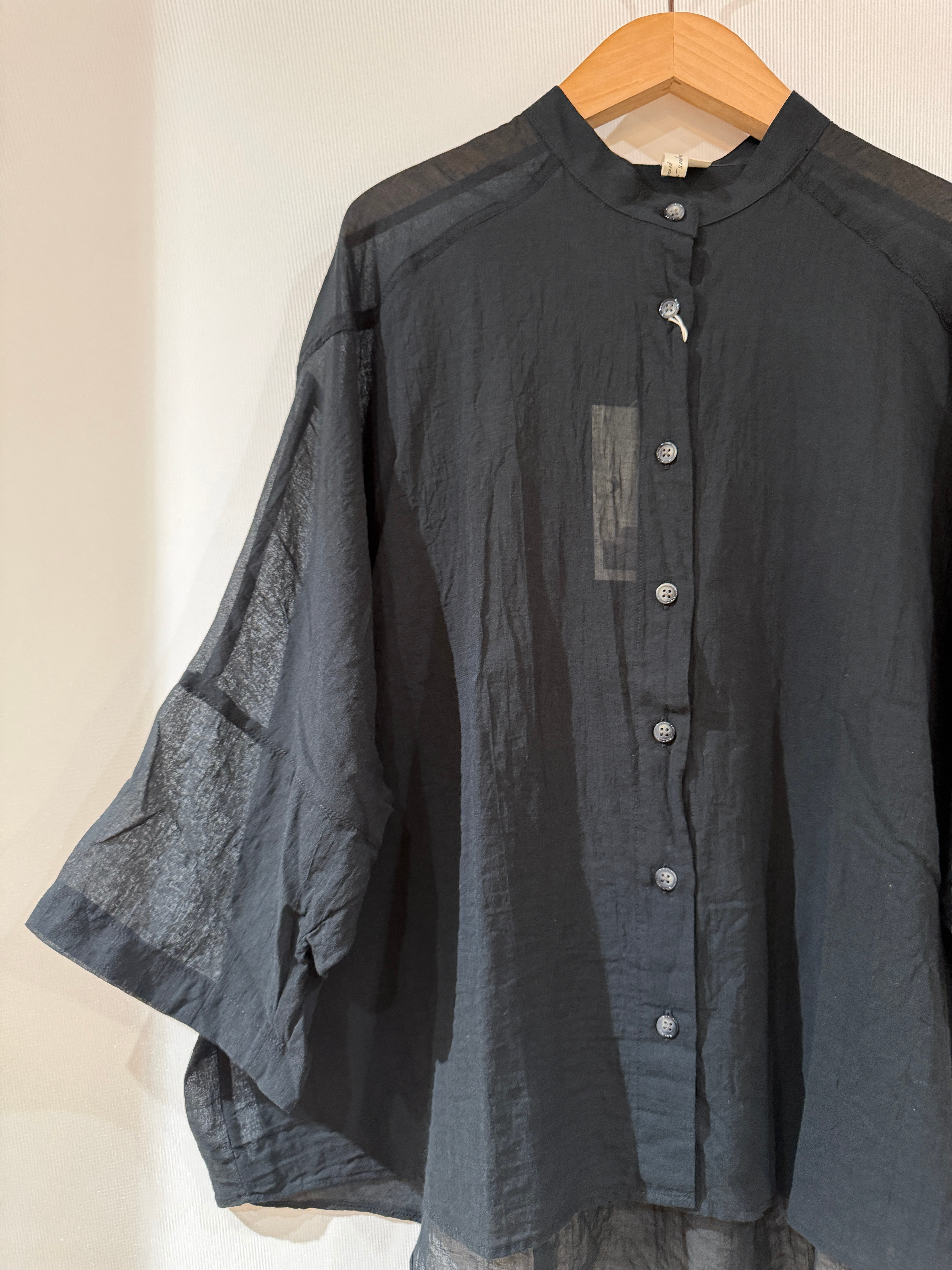 柔らかな薄手の綿ローンを使用した、7分袖ワイドドルマンブラウス